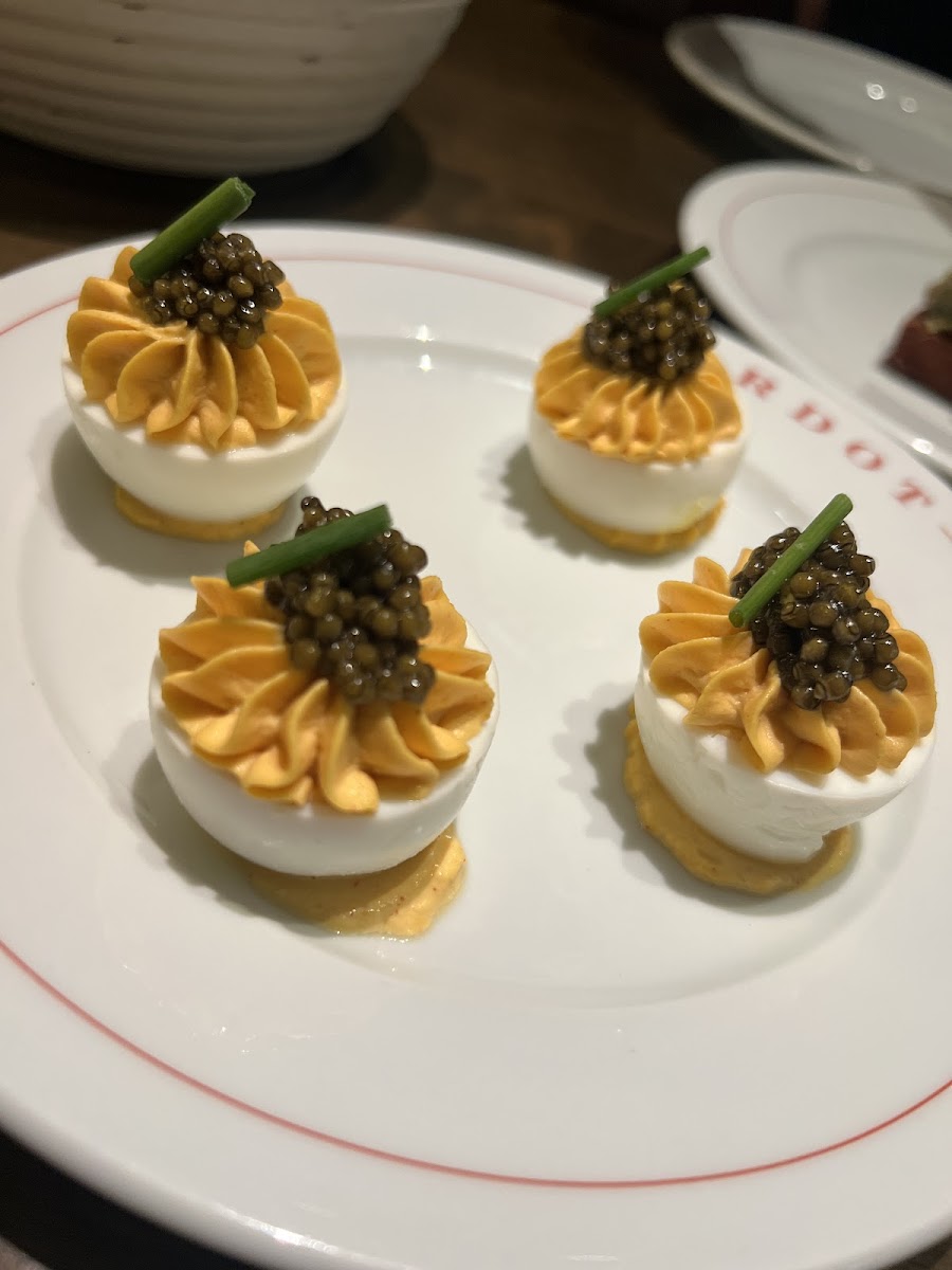 BARDOT Brasserie is a must try if you're coming to Vegas. I enjoyed dinner here with friends for the first time and hands down, Chef Michael Mina really transports your tastebuds to the classic French flavors you've been yearning for. The menu features iconic French comfort food and an array of both New World and Old World Wines and service that is top tier. The ambiance is dimly lit, dark tones and sometimes felt a little loud with all the noise but it was manageable. We started out with the fresh warm bread and salted butter, escargot, oysters and deviled eggs with caviar. All of the petites plates listed above were out of this world. The escargot was delicious as it was drenched in absinthe butter and garlic flakes on top. For starters, we decided to try the steak tartare and it was beyond delicious. Highly recommend you give this a try. For the salads, we went with the crab and endive salad which was an excellent choice. It all tasted extremely fresh. The entrées we decided on were the roasted chicken which was delicious but the flavors didn't wow any of us. However, the mushroom bread pudding that came along with it was something I had never had before and really enjoyed it. The double cut pork chop was cooked to perfection and the flavors were divine. The grilled rack of lambs in the tomato-red pepper jus was unlike any other rack of lambs I've had before. The 8oz. filet was excellent with bold flavors and cooked just right. Lastly, the mac and cheese, otherwise known as Macaroni Gratinée is something I'm still drooling about days later. Don't even second guess it, order it. I promise you won't be disappointed. Overall, my experience at Bardot was excellent. I can't wait to go back and explore the menu some more.