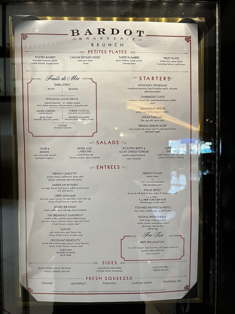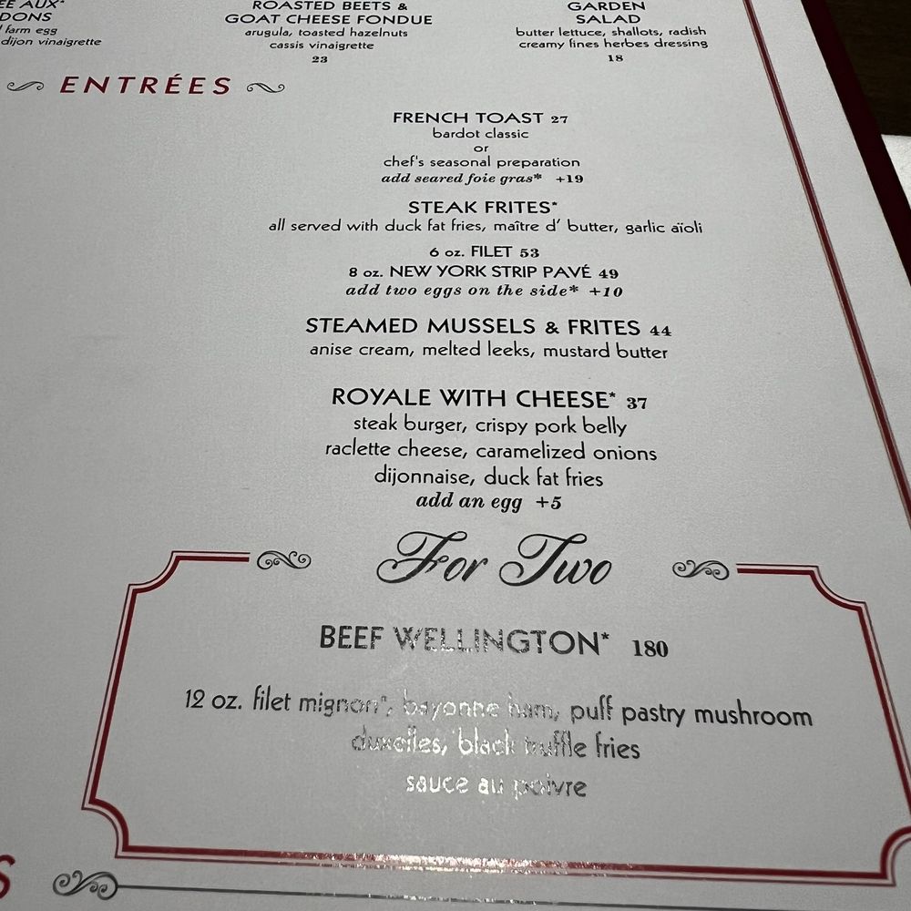 Located in the heart of Las Vegas, BARDOT Brasserie is a French steakhouse offering a range of dining options including keto and vegan choices. With an upscale and classy ambiance, this restaurant is perfect for both intimate dinners and lively group gatherings. Customer reviews highlight menu favorites such as the Croissant Egg Benedict with impeccable hash browns and the Steak & Eggs combination. The Beef Wellington and the Madame Crepes are also praised for their flavor and presentation. While some customers experienced longer wait times for food during busy periods, the overall consensus is positive, with exceptional customer service noted by many. Whether you're looking for a special occasion spot or a casual brunch destination, BARDOT Brasserie is a must-try for anyone seeking delicious French cuisine in a vibrant setting.